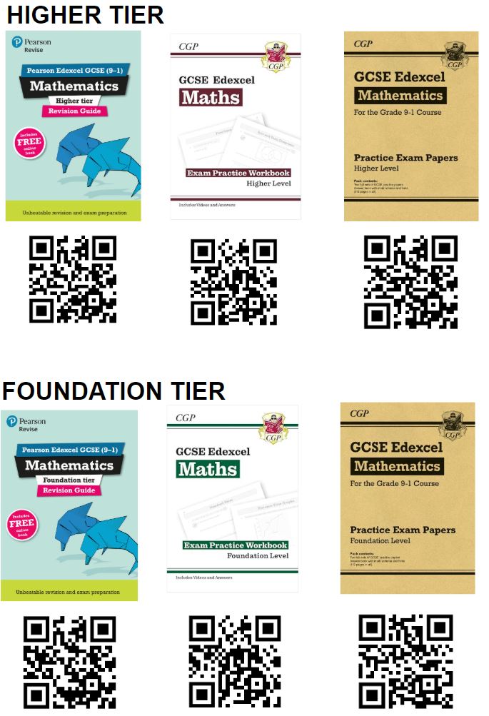 Students will need a large source of practice questions for revision. Students can use MathsWatch (which is free for students) or their Maths folders/books, but there are also preprinted resources that may be useful, containing questions (and answers):
